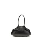 Alexander McQueen must õlakott Manta on skulptuurse vormiga, volditud ülaservade ja jäiga lainelise põhjaga. Esiküljel on kõrgsageduslikult lamineeritud McQueen logo ning tänu pikkadele torukujulistele sangadele saab seda kanda käes või õlal.