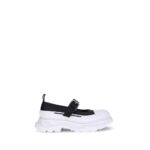 Alexander McQueen baleriinad on valmistatud naha ja kummi segust ning eristuvad küljel oleva reljeefse logoga. Mudelil on reguleeritav jalaseljarihm, tugevdatud ninaosa ja kannal logoga tõmbeaasa; logo on reljeefsena ka siseküljel ning ülisuur tald lisab modernse aktsendi ja tagab mugavuse.