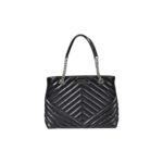 Armani Exchange naiste suur kott, mudel SHOPPING 949156 4R742. See polüestrist shopping-kott eristub tepitud kalasabamustri ning elegantsete detailidega, nagu kahekordsed sangad ketist ja kunstnahast, ning esiküljel oleva metallse Armani Exchange logoga.