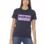 Baldinini Trend sinine naiste T-särk lühikeste varrukatega ja ümarakaelusega. Mudelit täiendab Baldinini Trend print.