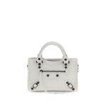 Balenciaga valge käekott on valmistatud kortsuefektiga Arena nahast. Mudelil on reguleeritav ja eemaldatav õlarihm, kaks käsitsi põimitud nahast käepidet, messingitooni metalldetailid, sõlmitud nahast tõmblukuga kinnitus, eesmine sõlmitud nahast tõmblukuga tasku, sisemine lukuga tasku ja puuvillasest lõuendist vooder.