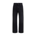 Balmain mustadel teksapükstel on peidetud tõmblukuga kinnitus ja üks nööp. Mudelil on vööaasad, viietaskuline disain ning taga kontrastne logopatch.