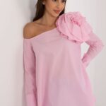 Viimistletud detailid ja luksuslik hoiak. Lakerta pluus dekoratiivse kangaslillega vasakul õlal.
