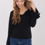 Italy Moda pluus on elegantne pikavarrukaline mudel kehasse töödeldud lõikega, mis rõhutab siluetti ning ühendab klassikalise stiili dekoratiivsete detailidega. Siledakoelisel mudelil on V-kaelus, pikad kellukakujulised varrukad ning dekoratiivsed kangaslilled varrukatel ja kaelusel.