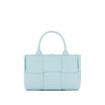 Bottega Veneta sinine kandekott on kahe pealmise käepideme, sisemise nahast koti ja Intrecciato punutisega. Kott on ilma voodrita ja suletakse pingutusnööridega.