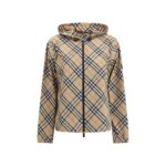 Burberry veekindel jakk. Reguleeritava nööriga kapuutsil on Archivio Check muster.