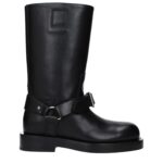 Viimistletud detailid ja luksuslik hoiak. Burberry mustadel saabastel on pandelkinnitus.