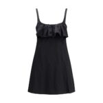 Chloé mini kleit on valmistatud pestud tehnilisest satiinist ning sellel on sügav esikaelus, mis loob sensuaalse ja kaasaegse elegantsi. Disaini täiendavad õrnad volangid rinnal ja avatud seljaosa, mis lisab modernse ning viimistletud aktsendi. Kleidil on seljal ujumisriietuse stiilis Chloé konkskinnitus, seljalukk ning funktsionaalsed küljetaskud, ühendades esteetika ja praktilisuse.