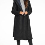 Ajatu siluett ja viimistletud hoiak igaks hooajaks. awama must mantel mudel 200559, sallkrae ja kapuutsiga.