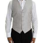 Viimistletud detailid ja luksuslik hoiak. Dolce & Gabbana helehall pidulik vest reguleeritava seljarihmaga.