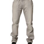 Viimistletud hoiak ja ajatu stiil igapäevaseks kandmiseks. Dolce & Gabbana helehallid sirge lõikega teksapüksid, lukuga ja nööpkinnitusega.
