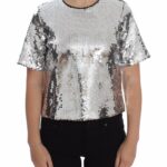 Ajatu valik väljapeetud stiili rõhutamiseks. Dolce & Gabbana must ümara kaelusega pluus-T hõbedaste litritega.