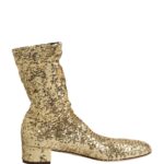 Ajatu valik pidulike komplektide viimistlemiseks. Dolce & Gabbana kuldsed lühikesed saapad, trükitud viimistlusega.