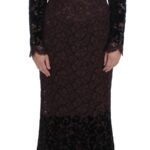 Ajatu siluett ja viimistletud detailid pidulikuks hetkeks. Dolce & Gabbana lilla lilleline pitsmaksikleit, taga lukuga kinnitus.