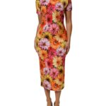 Dolce & Gabbana midikleit on tuppsilueediga ning kaunistatud mitmevärvilise lillemustriga. Mudelil on lühikesed varrukad ja tagant tõmblukuga kinnitus.