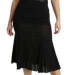 Ajatu valik piduliku ja viimistletud stiili loomiseks. Dolce & Gabbana must merineitsi lõikega kõrge vöökohaga midiseelik tõmblukuga kinnitusega.