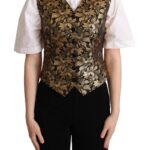 Dolce & Gabbana musta ja kuldse žakaarmustriga varrukateta vest, ees nööpkinnitus.