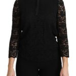 Viimistletud detailid ja luksuslik hoiak. Dolce & Gabbana must pitspluus pikkade varrukatega, logodetailidega.