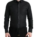Viimistletud detailid ja luksuslik hoiak. Dolce & Gabbana must ametlik särk GOLD logodetailidega.