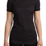 Viimistletud detailid ja luksuslik hoiak. Dolce & Gabbana must täpiline ümmarguse kaelusega T-särk logo detailidega.