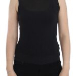 Ajatu disain ja viimistletud detailid luksusliku hoiakuga. Dolce & Gabbana must varrukateta ümmarguse kaelusega vestpullover logodetailidega.