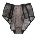 Dolce & Gabbana kõrge vöökohaga aluspüksid on musta värvi ning läbipaistva täpilise viimistlusega. Mudelil on pitsi ja täpilise võrkkanga detailid ning logodetailid.