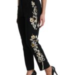 Dolce & Gabbana mustad lilleaplikatsioonidega kõrge vöökohaga kitsenevad püksid