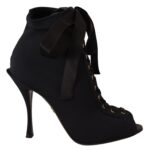Viimistletud detailid ja luksuslik hoiak. Dolce & Gabbana mustad pahkluu saapad avatud varbaosaga.