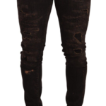 Viimistletud detailid ja luksuslik hoiak. Dolce & Gabbana tumepruunid skinny teksapüksid DG krooni tikandiga.