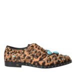 Viimistletud detailid ja luksuslik hoiak. Dolce & Gabbana pruunid leopardimustriga dressikingad Broque mitmevärviliste kristallidega.