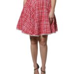 Viimistletud detailid ja luksuslik hoiak igapäevaseks kandmiseks. Dolce & Gabbana punane-valge A-lõikeline üle põlve seelik tõmblukuga kinnitusega.