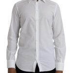 Viimistletud detailid ja luksuslik hoiak. Dolce & Gabbana valge meeste pidulik särk GOLD logodetailidega.