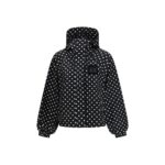 GANNI trükitud nailonist jakk peegeldab brändi mängulist ja modernset linnastiili. Kerge nailonmaterjal ja täpiline trükk, avar siluett ning laiad lohvakad varrukad; mudelil on kapuuts, ees tõmblukk, tõmblukuga küljetaskud ja rinnal GANNI logomärk.