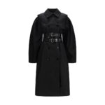 Ganni must mantel on topeltnööbitava nööpkinnituse, sobiva vöö ja aasadetailidega. Mantlil on volangkrae.