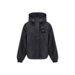 Ganni Recycled Nylon Jacket kannab sportlikku ja kaasaegset joont. Lühike kapuutsiga disain on praktiline ja linnaliku karakteriga, madaldatud õlaõmblused ning varjatud kinnitus lisavad avara lõikega mulje. Külgmised kandiga taskud täiendavad puhast siluetti; sirge alläär ja tagasihoidlik toon-toonis logo viimistlevad välimuse.