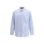 Gucci helesinine triibuline särk on valmistatud puuvillapopliinist ning viimistletud Gucci fil coupé detailiga. Särgil on teravatipuline krae, rinnatasku, ees nööpkinnis ja standardne lõige.