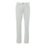 Valmistatud helesinisest venimatust teksakangast. Ees nööpkinnis, viis taskut ning taga nahast silt kontrastse kuldse logoga.