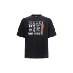 Gucci must T-särk on valmistatud raskest puuvillasest trikotaažist. Mudelil on Gucci Firenze trükk, ümar kaelus, langetatud õlad ja lühikesed varrukad.