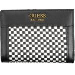 Guess Jeans must naiste rahakott on musta tooni naiste rahakott kontrastsete detailide ja esipaneelil oleva Guess logoga.