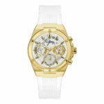 Ajatu disain, mis täiendab stiili igal sündmusel. Guess kuldne naiste käekell GW0409L2 on valge kummirihmaga.