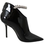 Ajatu disain ja viimistletud detailid igapäevaseks kandmiseks. Jimmy Choo mustad kontsaga saapad Blaize 100 mudeliga, kristallidega rihmaga.