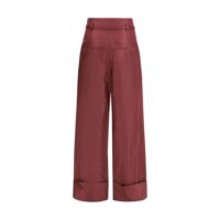 Max Mara püksid on elegantse ja struktureeritud rätsepatööga. Helkivas elevandiluu toonis mudelil on laiad sääred, kõrge värvel ning tõmbluku, liistu ja konkskinnitusega sulgemine; lisaks küljetaskud ja tagumised kahekordse kandiga taskud nööbiga ning sobiv nahast vöö ümmarguse pandlaga.