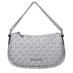 Michael Kors käekott on hõbedast kangast ning logodetailidega.