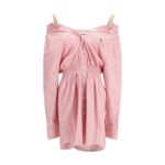 Miu Miu lühike triibuline kleit on graafilise triibumustriga. Elastses vöökohas on figuuri rõhutav siluett, nööpidega esikinnis lisab viimistletud ja funktsionaalse detaili; pikad varrukad tasakaalustavad kleidi lühikest pikkust ning tikitud logo annab eristuva aktsendi.