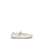 Viimistletud detailid ja luksuslik hoiak. Miu Miu valged baleriinad Sport on kontrastse trükitud logoga.