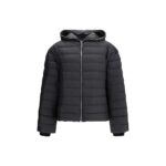 Moncler x Rick Owens must jope on tepitud disainiga mudel integreeritud kapuutsi ja lukkkinnitusega, mis ulatub kapuutsini. Vasakul varrukal on õmmeldud märk.