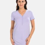 Ajatu valik igapäevaseks kandmiseks. Teyli lavendlililla öösärk on eest trukkidega kinnitatav.