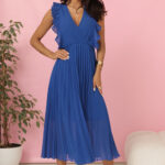 Viimistletud detailid ja luksuslik hoiak erilisteks hetkedeks. Numoco rukkilillesinine plisseeritud kleit EMILY wrap V-kaelusega.