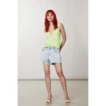 Viimistletud detailid ja luksuslik hoiak. Patrizia Pepe kollased lühikesed minipüksid, värv Summer Lime.