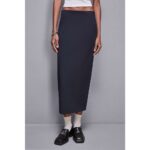 Ajatu siluett ja viimistletud hoiak igaks hooajaks. Patrizia Pepe tumesinine midiseelik, peamaterjal 72% polüester, 23% viskoos, 5% elastaan.
